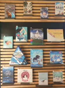 La neige des sommets se reflète dans notre vitrine! Petite sélection pour la faire venir et pour inviter tous ceux qui vont passer devant la librairie à entrer se mettre au chaud tout en gardant la tête dans les montagnes!